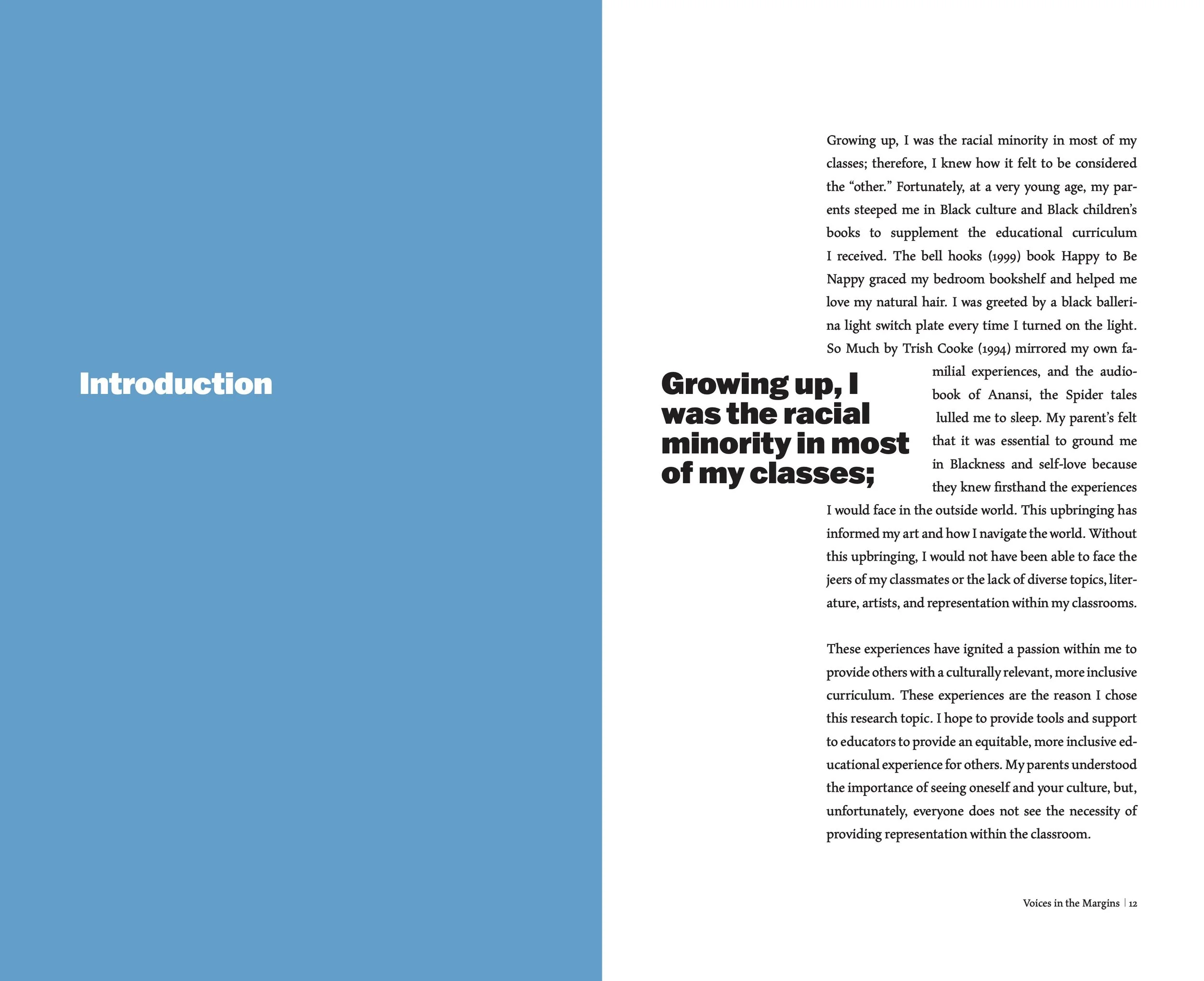 This thesis explores the implementation of culturally relevant/responsive teaching within the art classroom. The question that guided the research was: How can art teachers incorporate culturally relevant teaching into their curriculum to support equity and inclusion within the educational setting? In order to answer this question, I examined the current state of implementation through interviews, surveys, a literature review, work-based experiences, and classroom observations. The researcher determined a need for additional resources and a pathway for implementation through this examination.